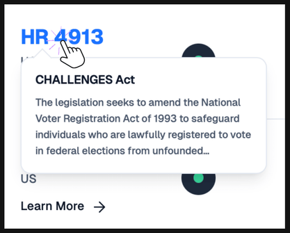You’ll see that bills still offer hover for more information, but now they also highlight so you can click directly into them for full details: