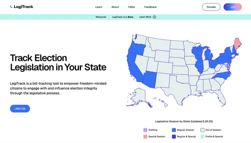LegiTrack was built to support the election integrity mission of True the Vote and is the first pro-liberty legislative and regulatory tracking tool designed to bring transparency to a process too often hidden from public view. For decades, laws have been quietly passed—many of which conflict with our founding principles—leaving citizens confused, unheard, and frustrated.